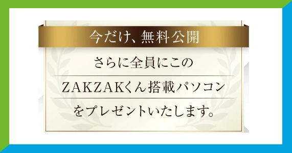 広告では「全員にZAKZAKくん搭載パソコンをプレゼントします」と書かれていますが、